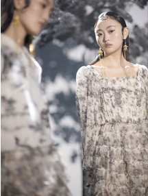 本季CHIU?SHUI(秋水伊人)設計師們在神秘莫比烏斯環的啟發下,探索極簡主義與極繁主義并存、復古與未來互融的復雜美學。